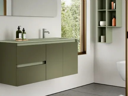 Suspended bathroom furniture in matte lacquered finish from the Rab Arredobagno brand: click and discover the modern Thai 404 bathroom furniture for ...
