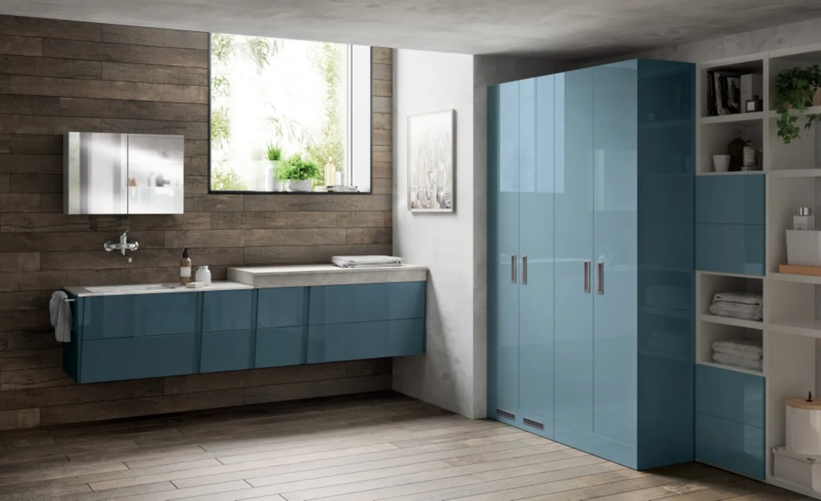 A great attention to detail guarantees the excellence that distinguishes every series of laundry bathroom furniture by Scavolini Bathrooms available in the showroom. The glossy lacquered model we offer is designed to decorate the bathroom by combining great functionality and style. The Laundry Space Lagu Verde Ottanio Bathroom Cabinet model by Scavolini Bathrooms in glossy lacquer is designed to furnish a room with great aesthetic value, functionality, and ease. An almost infinite choice of available materials and design colors distinguish the furniture of the well-known and renowned brand, synonymous with excellence in the field. The Bathroom Furniture collections by Scavolini Bathrooms offer good opportunities for customization, refined design, plenty of functionality, and ergonomics.