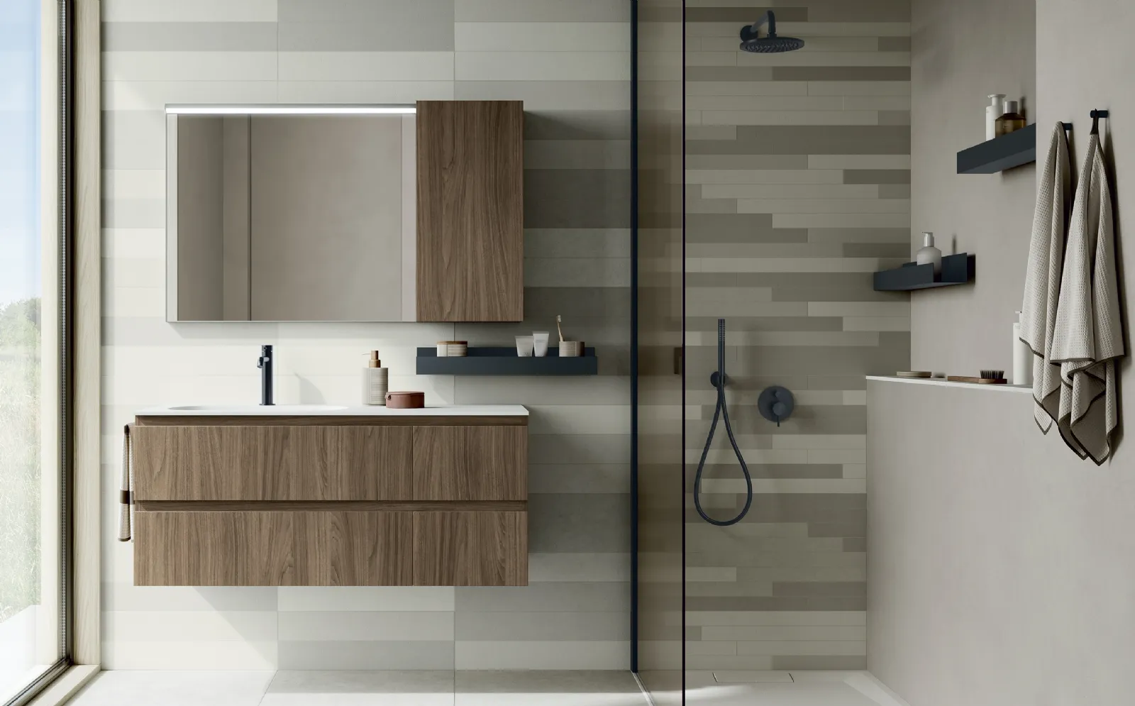 A great attention to detail ensures the excellence that characterizes every series of wall-mounted bathroom furniture by Rab Arredobagno available in the showroom. The melamine model we offer is designed to personalize the bathroom by combining great functionality and style. The suspended bathroom cabinet model Thai 301 by Rab Arredobagno in melamine is suitable for furnishing a beautiful, functional, and convenient space. Every proposal of modern Bathroom Furniture with wall-mounted cabinets by the brand helps transform the destination area into a pleasant interior. The Bathroom Furniture lines by Rab Arredobagno guarantee excellent customization opportunities, outstanding design, great functionality, and ergonomics.