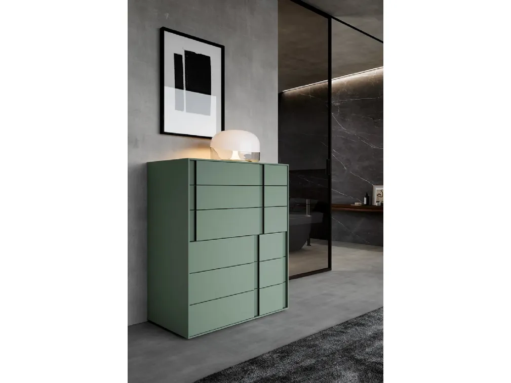Do you want to design the bedroom with bedside tables and furniture with drawers from Adok? Here is the Loop chest of drawers model in melamine for modern spaces.