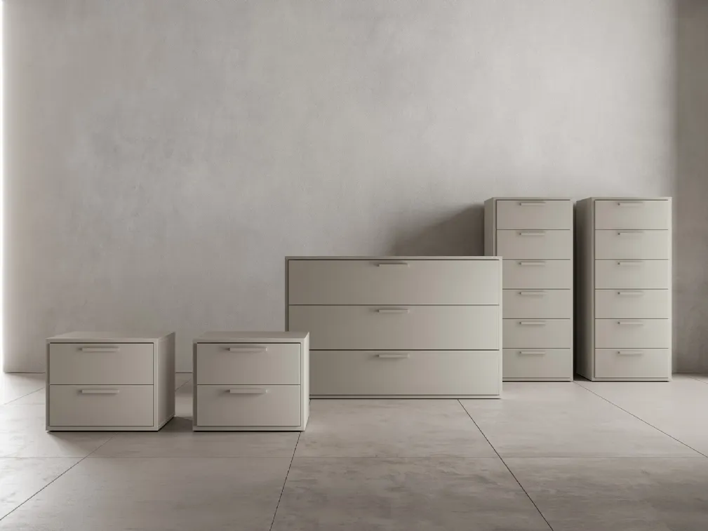 Do you want to set up the bedroom with bedside tables and furniture with drawers from SantaLucia? Here is the Kros Gruppo Notte model in melamine for modern spaces.