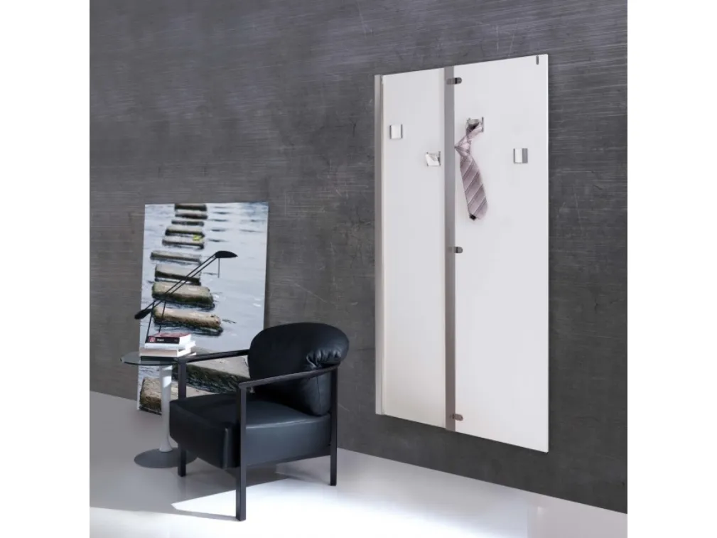 Our architects will guide you in selecting a good coat rack model, so that it can complete the practical qualities and aesthetic value of the environment. Modern accessories and coat racks add great value to the decoration of our homes and are multifunctional as well as beautiful to look at. How to match Accessories to the decor? With various proposals from Maconi, you will have colors and textures at your disposal to express your decorating imagination. Coat rack with Joy mirror by Maconi in melamine: it fits in modern-style domestic spaces, perfectly combining great practicality and design qualities.