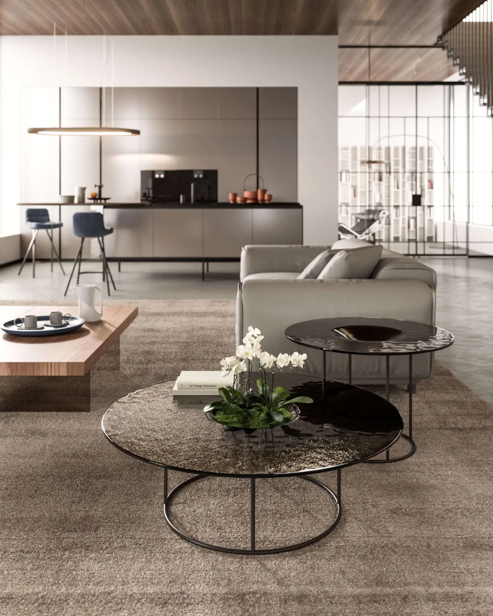 Do you want to embellish your interiors with Ozzio Complements? Here are multiple models of glass coffee tables like Moved.