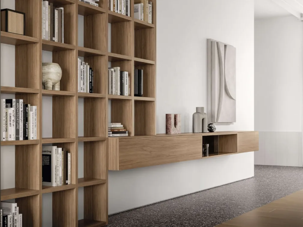 Precious materials and bold shapes: discover the Homy Collection 08 bookshelf by SantaLucia among the most original modern wall libraries.