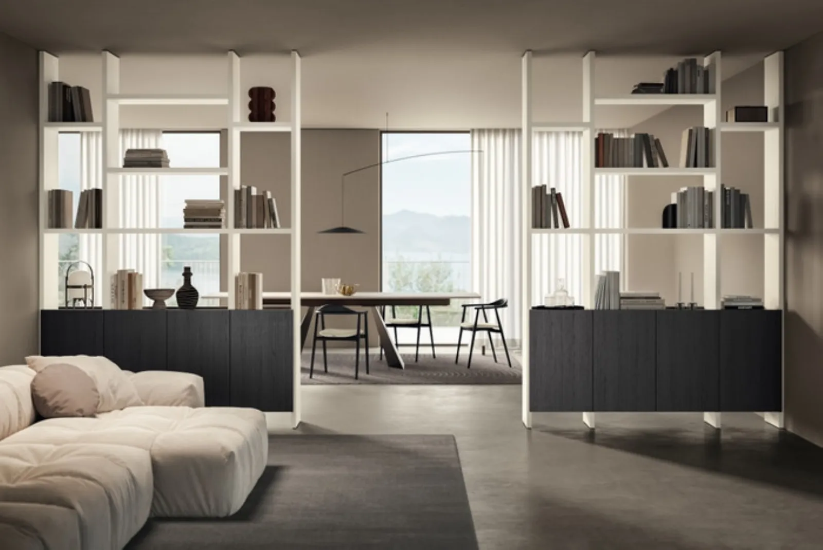 Do you want to modernize your living room? Find out more about modern dividing bookcases and decorate your spaces with the Living Fluid Essence model.