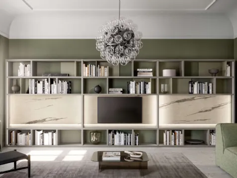 High-quality materials and strong shapes: discover the Location 01 bookcase by SantaLucia among the most original modern modular bookcases.