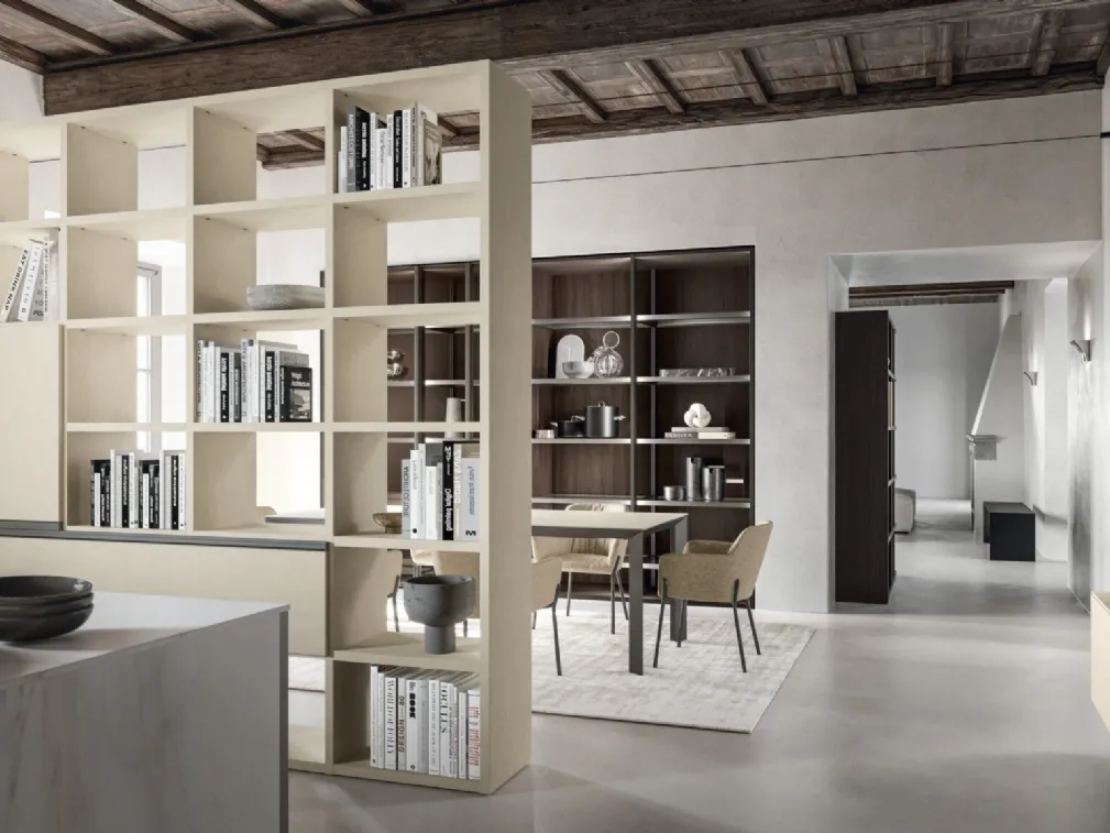 High-quality finishes and sharp lines: discover the Location 02 bookcase by SantaLucia, one of the most original modern room divider bookcases.