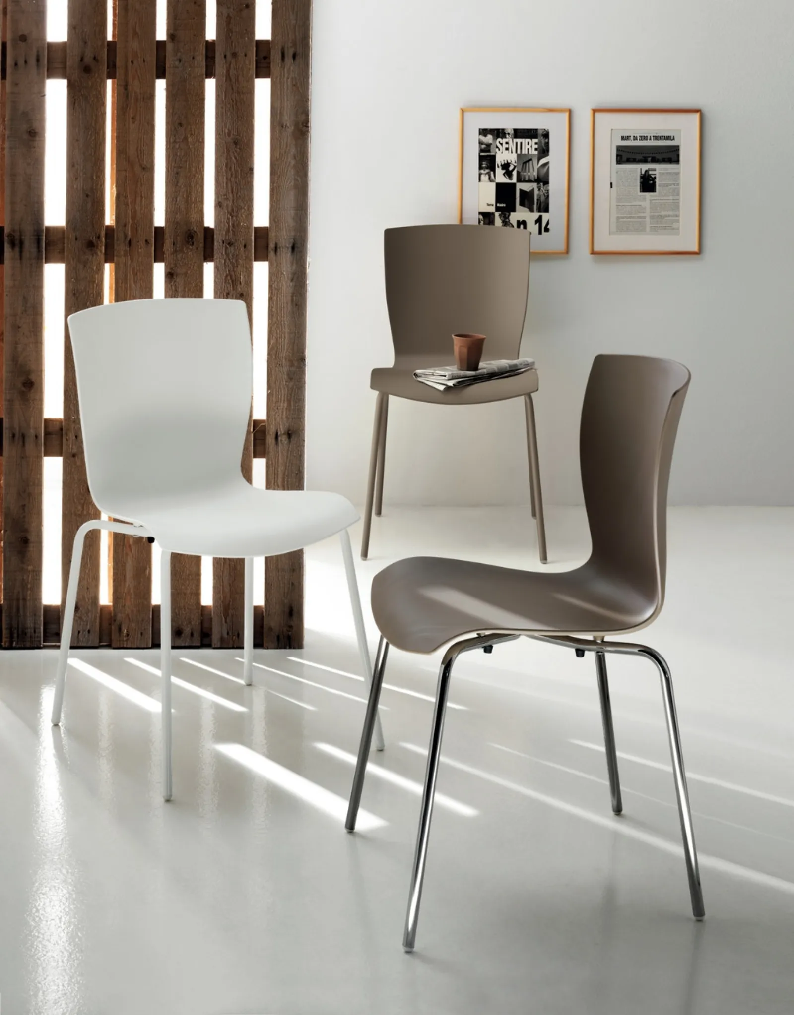 In our showroom we present exclusive furniture and accessory items, among which you will surely find the solution that suits you. Contact us and discover more about the Scavolini Chatty polypropylene chair model shown in the photo. Modern chairs, whether in wood or upholstered, are complex furniture pieces, characterized by an almost infinite choice of colors, shapes, and patterns. In addition to fulfilling an essential role, these furniture pieces are able to emphasize even an anonymous and accessory-free place. Among the best brands available in our Furniture Store, you will find the most beautiful stackable kitchen chairs on the market.