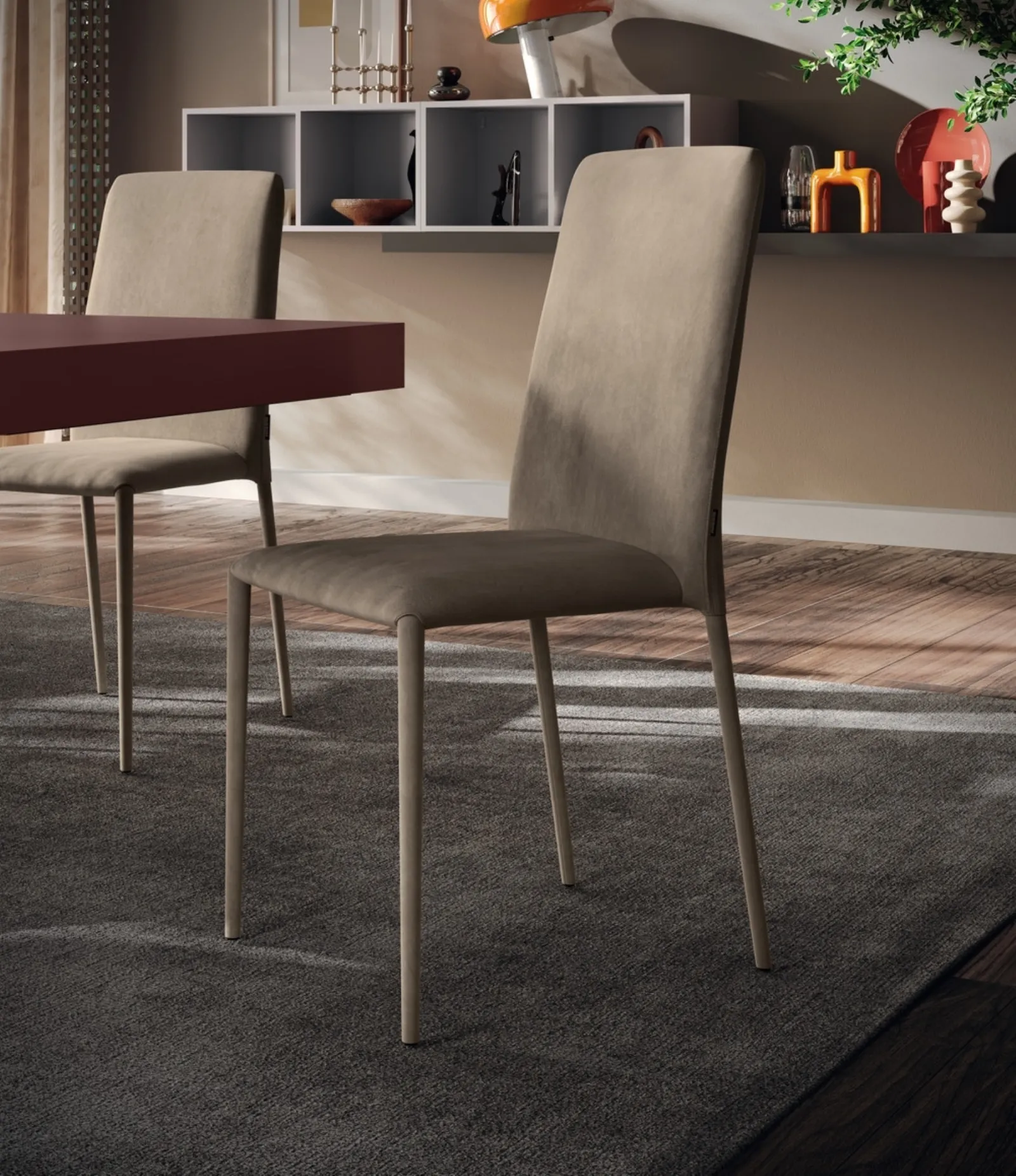 If you want a fabric chair to complete your home environment, get information about the model in the photograph and find a coordinated table. A wide variety of fixed dining seats awaits you in our store: contact us for information and quotes and enhance your spaces with the excellence that only Scavolini can guarantee for furniture and accessories. The living room and kitchen area are not really pleasant and comfortable if furnished with the wrong chairs, that's why they need to be matched to the rest of the furniture and the room's dimensions. Scavolini's Cloe chair upholstered in fabric: this model will customize spaces of every kind, particularly modern atmospheres.