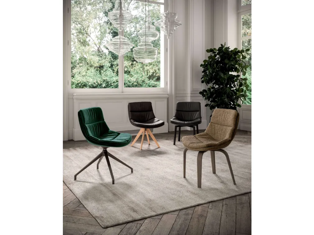 If you want a leather chair to enhance the atmosphere of your home, get information on the model in the image and find a matching table. A wide range of fixed dining chairs is waiting for you in store: contact us for information and quotes and enhance your spaces with the quality that only Ozzio can guarantee for furniture and accessories. In the living room or kitchen, chairs are essential pieces of furniture: they define the style of the environment and serve an indispensable function. The living room and kitchen are not truly welcoming and comfortable if furnished with the wrong chairs, which is why they should be matched to the rest of the furniture and the size of the room. Ozzio's Syria Chair: this model will customize spaces of all kinds, particularly modern settings.