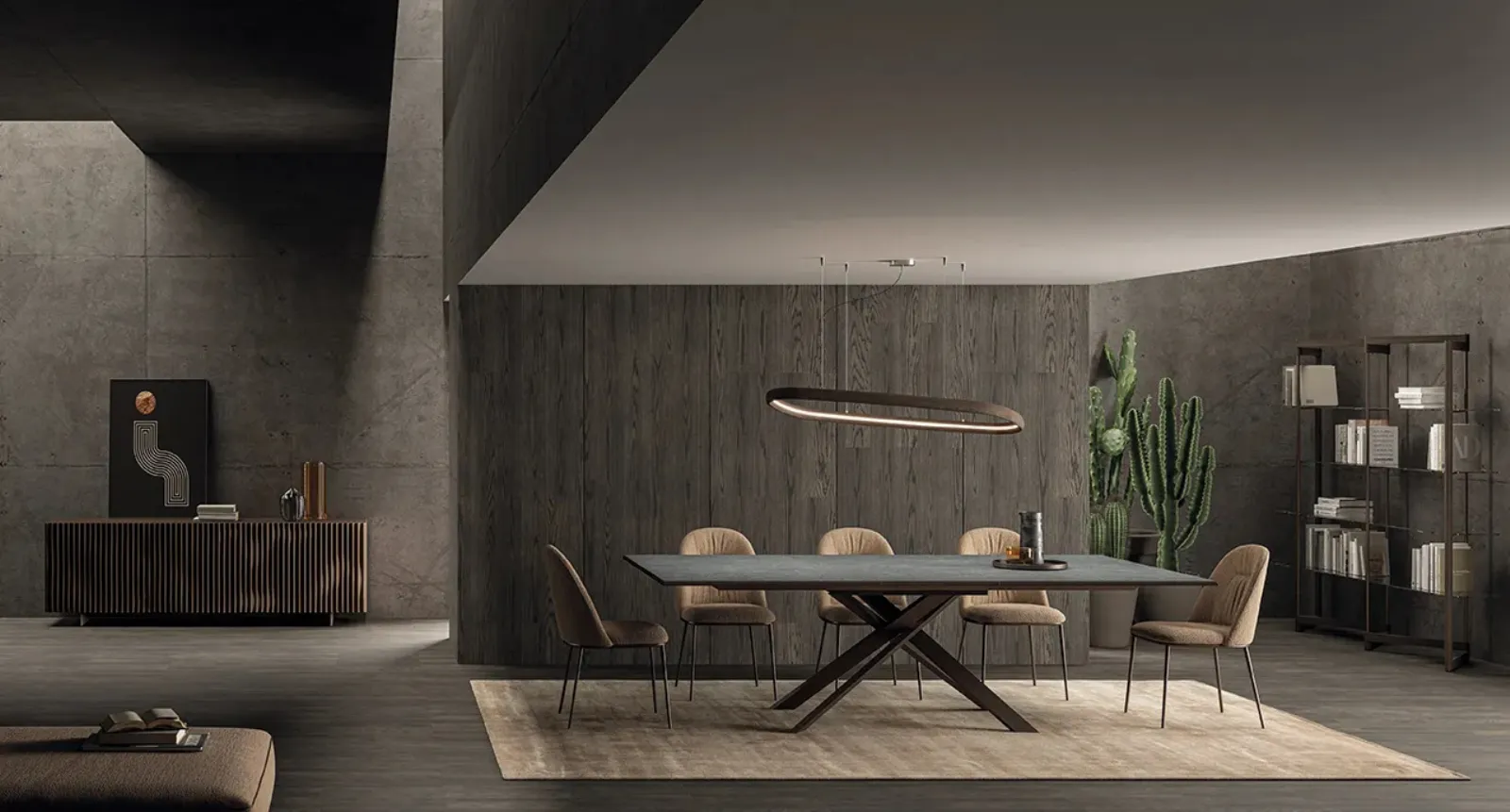 In the showroom you will find a rich catalog of extendable tables from the best brands, including the dining model shown in the photo. When purchasing the perfect table for you, you need to consider dimensions, shapes, materials, and style in order to organize the space with great aesthetic value. Choose furniture and accessories in concrete from the best brands to complete your spaces with functionality without ever neglecting aesthetics. Whether you want to change the modern furniture you have at home or buy them for the first time, with us you can see the most beautiful solutions on the market in person. In our website dedicated to Home Furnishing, you will find everything you need for the living area or kitchen.