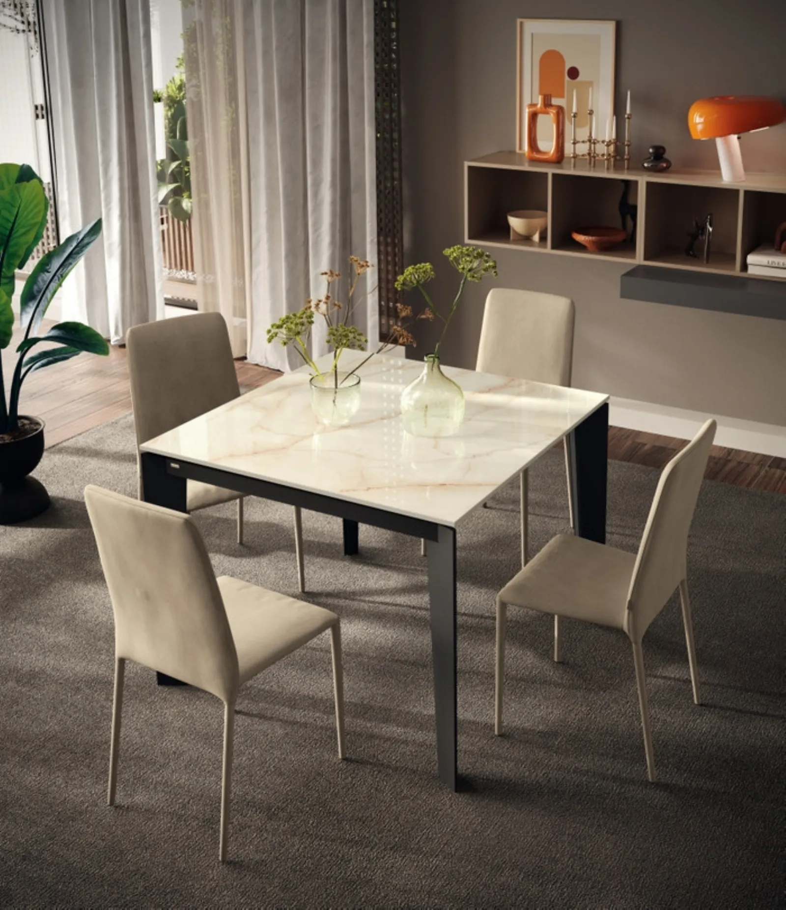 If you are looking for modern extendable tables, we offer you the Infinity dining table model in stoneware by Scavolini.