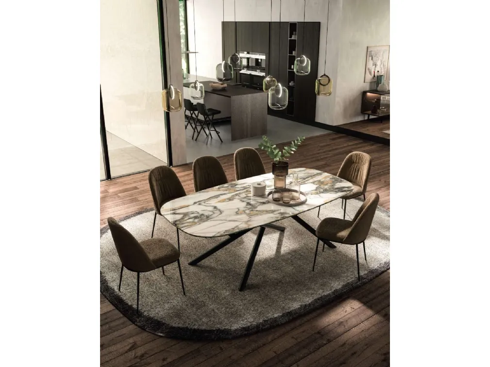A model like the one in the photograph, when paired with the right chairs, will enhance the look of the rooms in the house dedicated solely to conviviality. The renowned brand Ozzio, a leader in ceramic furnishings, has chosen a wide variety of materials, lines, and colors for its collection. Ideal for creating unique combinations with modern chairs and accessories, the brand's fixed tables are among the most beautiful solutions on the market, perfect for the living room and kitchen. Ozzio Fixed Table Random: made with quality materials, it stands out with its sharp table top and a refined and elegant base. If you desire a dining table with high aesthetic value, contact us to receive information and quotes on the model featured in the photo.