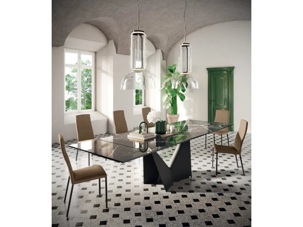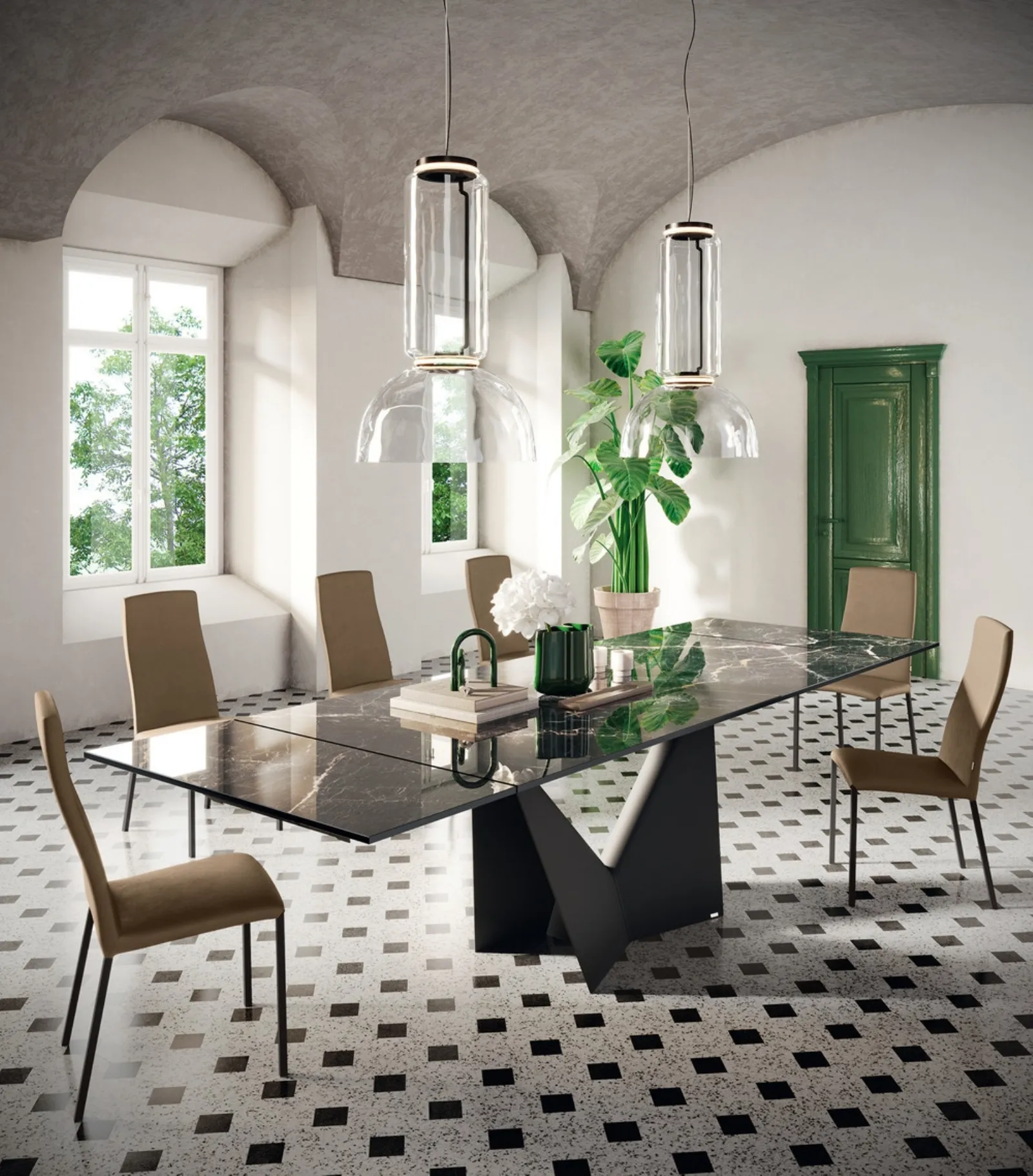 Ideal for creating unique combinations with chairs and design accessories, the extendable tables from the brand are among the most original solutions on the market, perfect for the living room and kitchen area. A model like the one in the photograph, paired with the right chairs, will enrich the style of the rooms in the house dedicated to conviviality. Sidney Table by Scavolini: made of high-quality materials, it is characterized by the decisive lines of the top and an elegant and refined base. The renowned brand Scavolini, specializing in the production of furniture in stoneware, has chosen a wide variety of materials, lines, and tones for its collection. If you are looking for a high-quality dining table, contact us and receive information and quotes on the model shown in the photo.