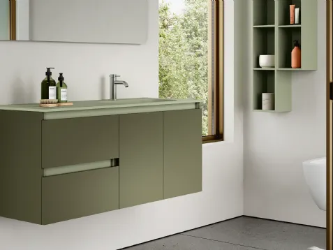 Aquo Bathroom Furniture in Matera Gray Matt Lacquer by Scavolini Bathrooms: click and get information on suspended bathroom furniture in matt lacquer and accessories of the brand.
