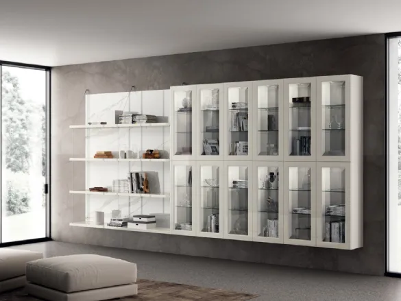 Click and discover the modern suspended bookcases! The Living Exclusiva Bianco Prestige Scavolini model will complete a practical and dynamic living room.