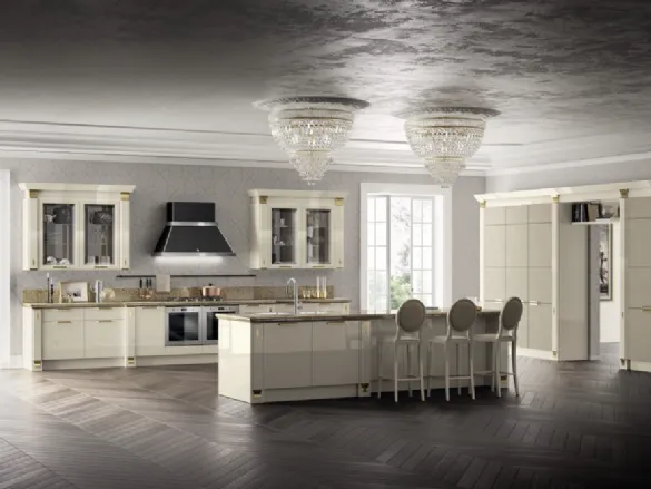 Choose the Exclusiva kitchen in Cream Porcelain Glossy Lacquer: the traditional Scavolini solutions in glossy lacquer are a guarantee of quality, style and design.