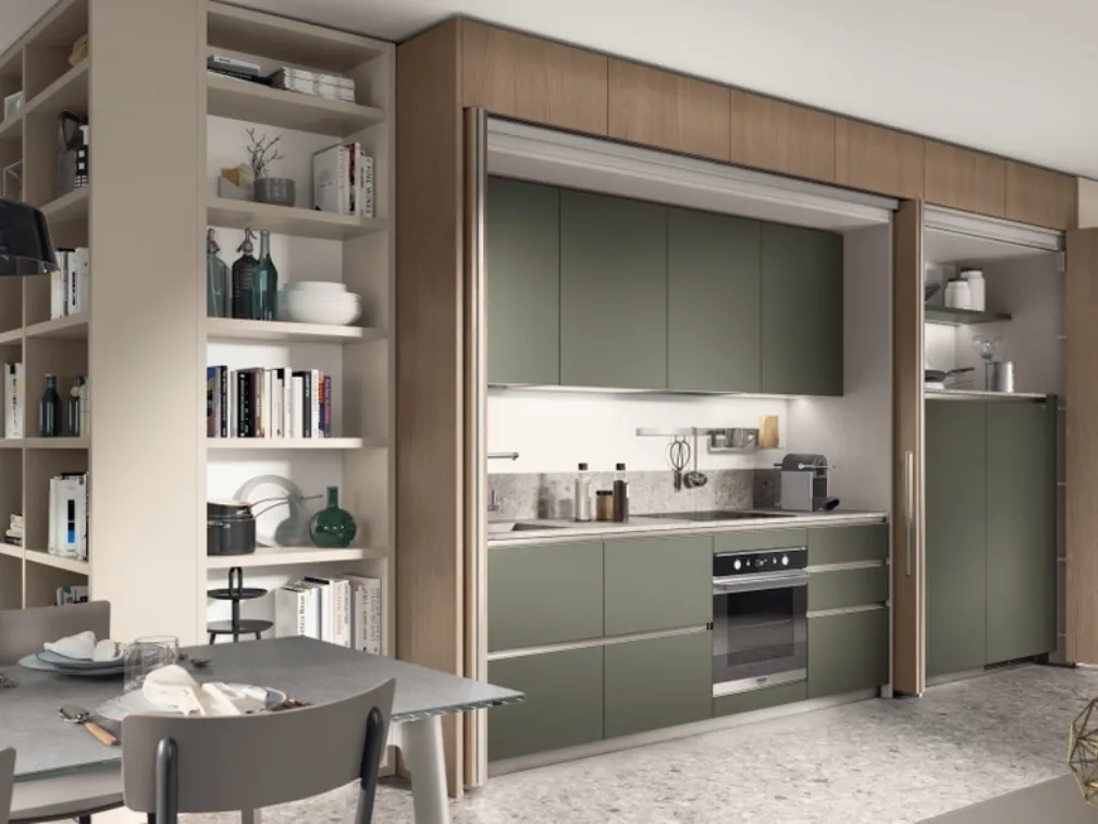 Find on our website the most beautiful proposals of the brand and design the room you have always dreamed of with personalized space-saving monobloc solutions for you. We have reserved for you the most beautiful proposals and a rich range of custom kitchens signed by the renowned brand Scavolini. The custom kitchen Boxi 05 Verde by Scavolini is waiting for you to enrich your kitchen area by making the most of the shape and dimensions of the room, according to your most personal housing needs.