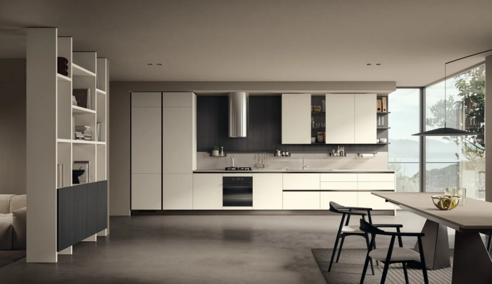 Discover the high modularity of Scavolini's linear kitchens: the Essenza 04 kitchen in melamine is waiting for you!