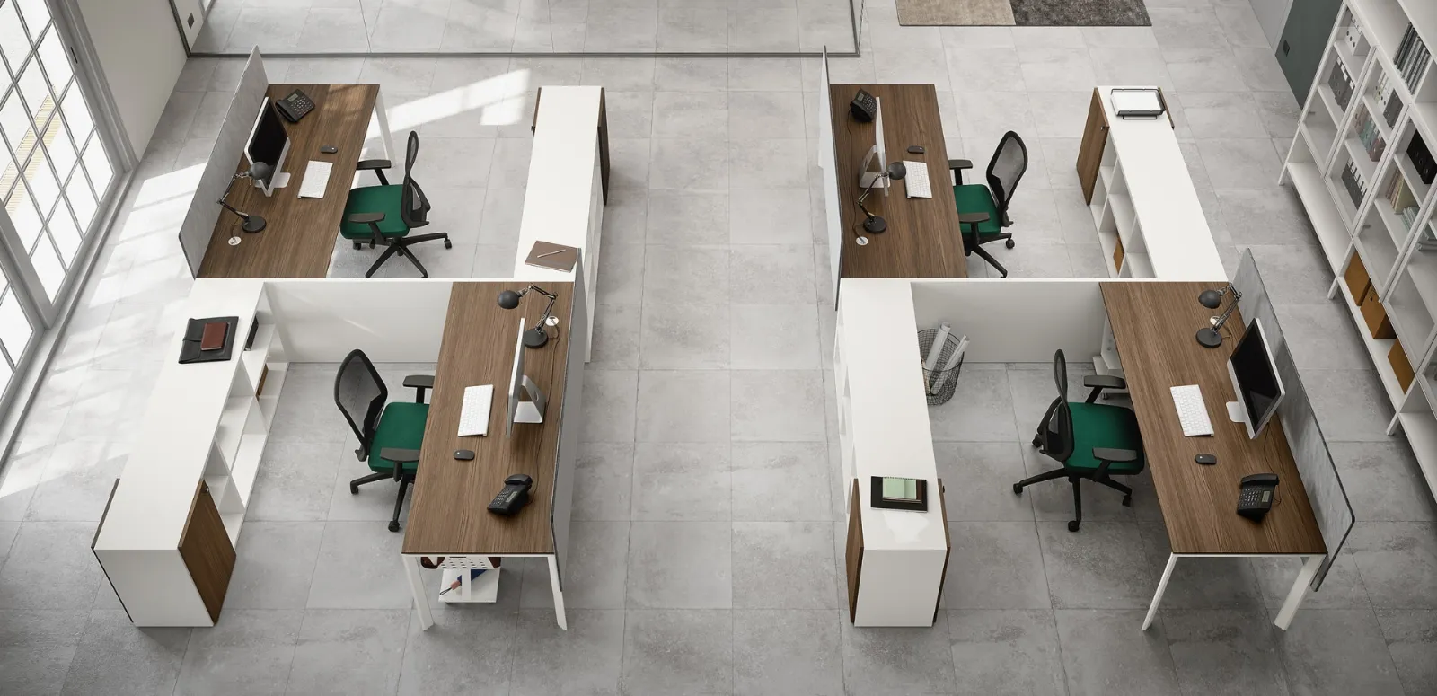 Are you looking for office furniture from the best brands? Discover the different solutions of melamine operative desks, such as the 5C Operative Desk model by Cinquanta3.