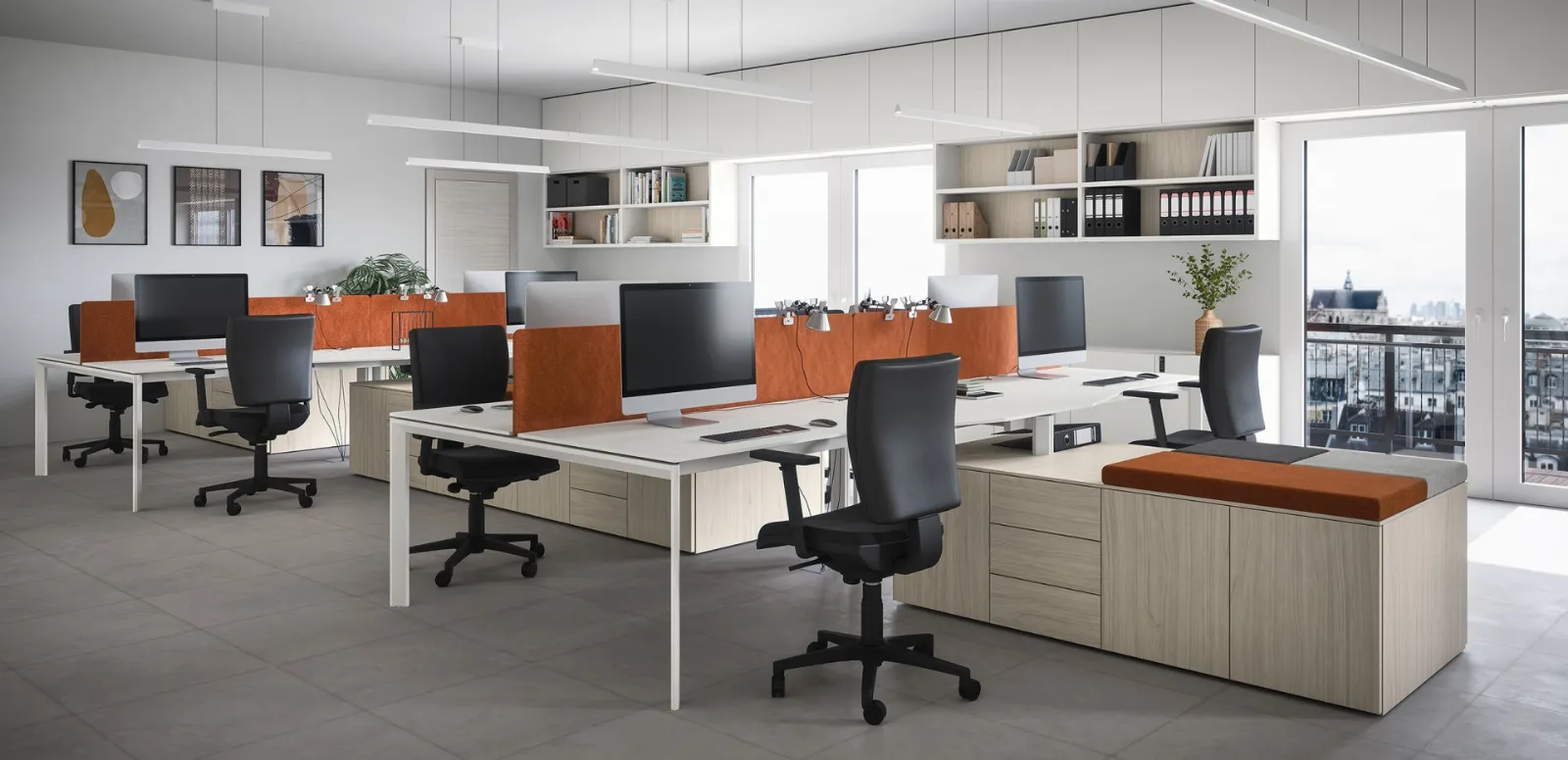 Do you want to furnish your workspaces? Here are various proposals for melamine operative desks, such as the 06B Operative Desk model by Cinquanta3.